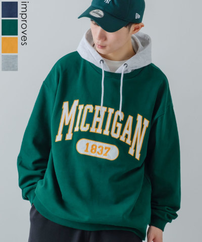 フェイクレイヤード ロゴ刺しゅう フード トレーナー