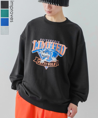 PETTYWOLF プリント 裏毛 クルーネック トレーナー