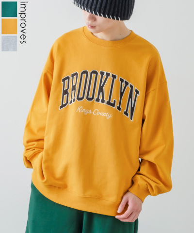 カレッジロゴ アップリケ 裏毛 クルーネック トレーナー