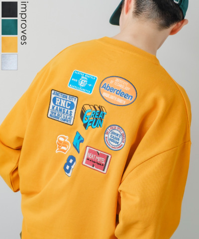 バック ワッペン 刺しゅう 裏毛 クルーネック トレーナー