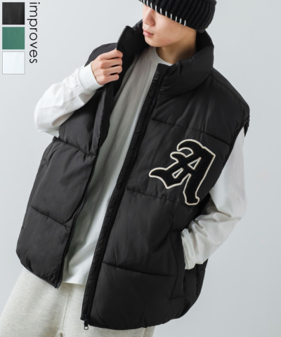 ロゴワッペン刺しゅう フェイクダウンベスト