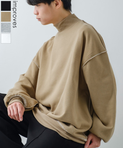 ステッチデザイン オーバーサイズ ハイネック スウェット トレーナー