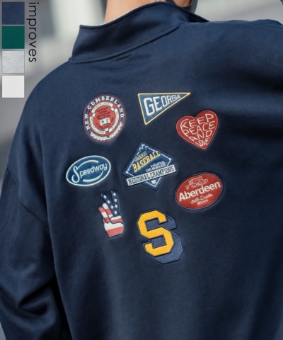 バック ワッペン 刺しゅう 裏毛 ハーフジップ スウェット トレーナー
