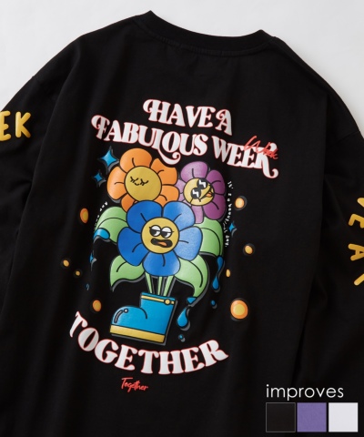 フラワーグラフィック 発泡プリント 長袖 Tシャツ