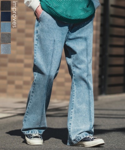 デニム ピンタック フレアパンツ