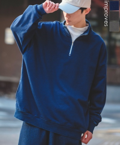 インディゴ染 ハーフジップ 裏毛 スウェット トレーナー