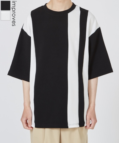梨地 切り替え ボーダー 半袖Tシャツ