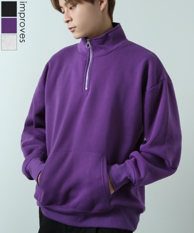 ハーフジップ コットンタッチ 裏起毛 トレーナー