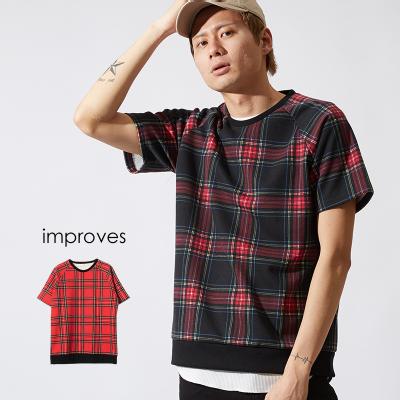半袖チェック柄裏毛スウェットプリントトレーナー|メンズファッション・服通販【improves公式】