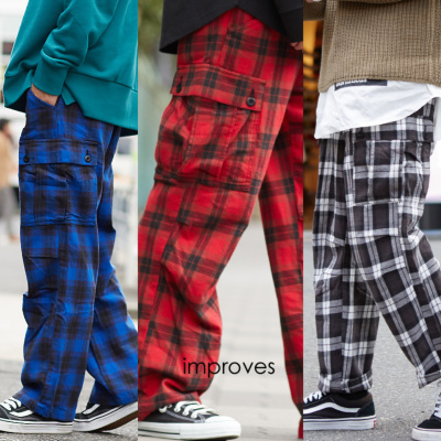 ヘビーネルチェックワイドカーゴパンツ |メンズファッション・服通販【improves公式】