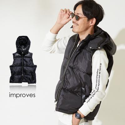 フェイクレザー切替フード脱着中綿ベスト|メンズファッション・服通販【improves公式】