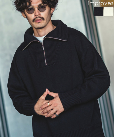 スタンド ハイネック カラー ハーフジップ ニットセーター