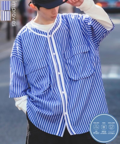 NULL ヌル ストライプ 半袖 ベースボールシャツ