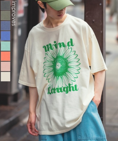 UAU ワオ ピグメント加工 Mind Laught フラワー ロゴ プリント 半袖Tシャツ