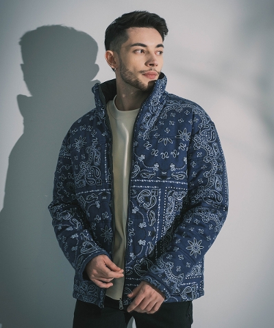 バンダナ柄 中綿 リバーシブル スタンド ジャケット メンズ