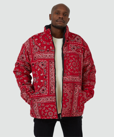 バンダナ柄 中綿 リバーシブル スタンド ジャケット メンズ