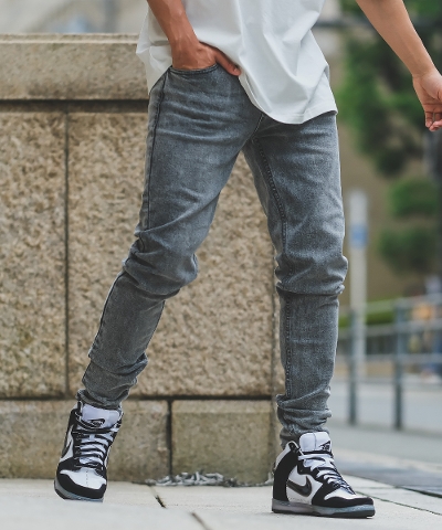 スキニーフィット ダメージ グレーデニムパンツ メンズ
