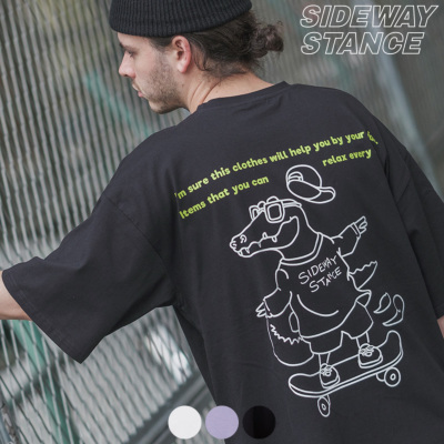 SIDEWAY STANCE サイドウェイスタンス ワニイラストプリント ビッグシルエット Tシャツ