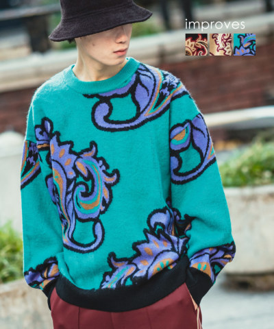 SIDEWAY STANCE サイドウェイスタンス ダマスク柄 モヘアタッチ ニットセーター