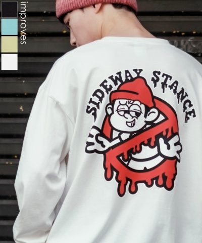 SIDEWAY STANCE サイドウェイスタンス 通行止めマスコット バックプリント 長袖Tシャツ