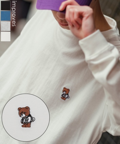 SIDEWAY STANCE SIDEWAY STANCE サイドウェイスタンス スケータークマワンポイント 刺しゅう 長袖Tシャツ