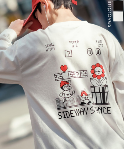 SIDEWAY STANCE サイドウェイスタンス レトロゲーム プリント 長袖Tシャツ