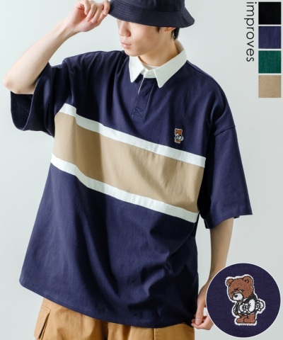 SIDEWAY STANCE サイドウェイスタンス USコットン スケボーくま ワンポイント 刺しゅう 切替 半袖 ラガーシャツ