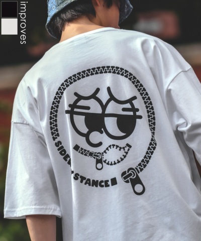 SIDEWAY STANCE サイドウェイスタンス ファスナー マスコット プリント 半袖Tシャツ