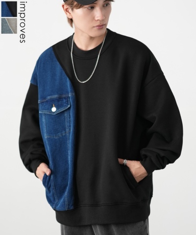 SIDEWAY STANCE サイドウェイスタンス デニムジャケット切替 スウェットトレーナー