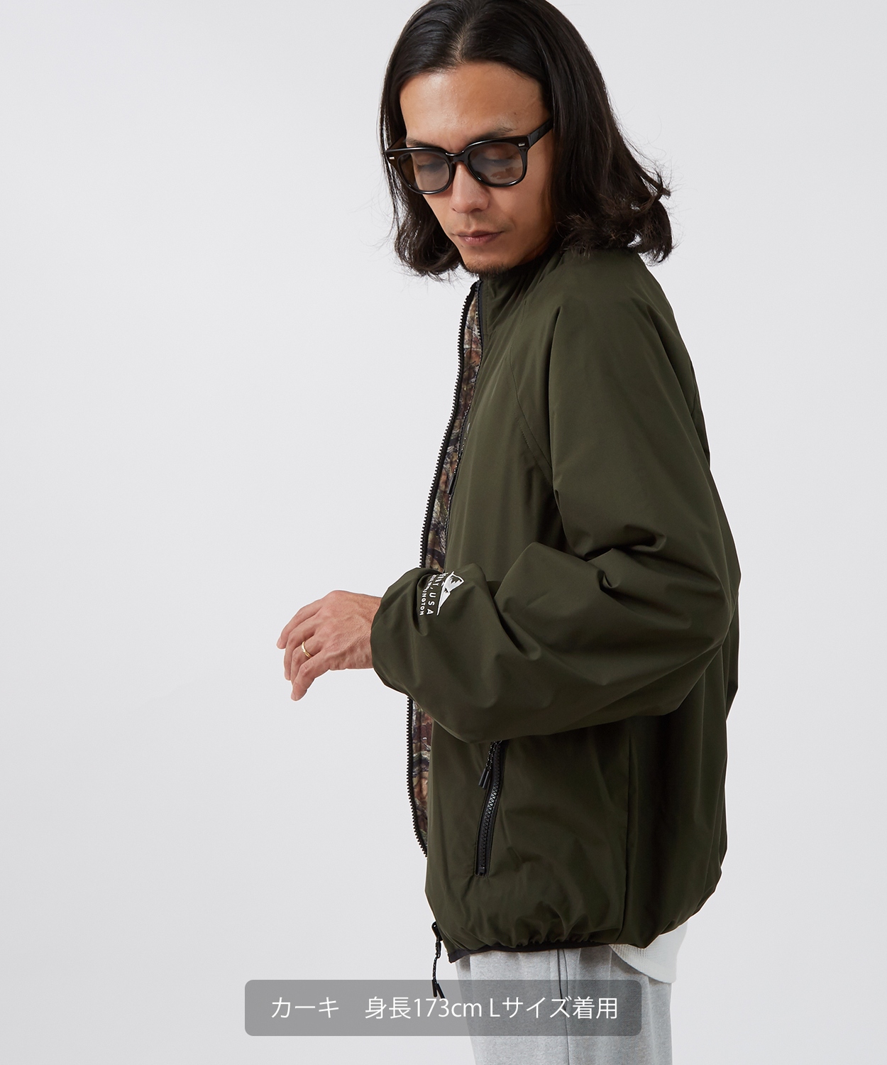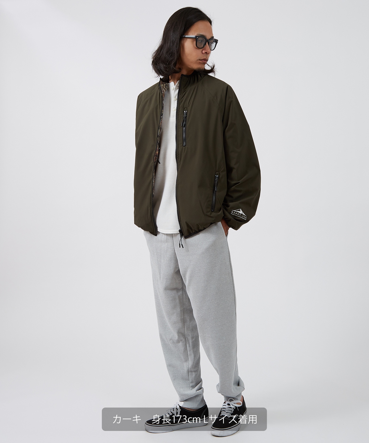 ●ゆったりとしたサイジングで厚手のインナーも着込みやすい