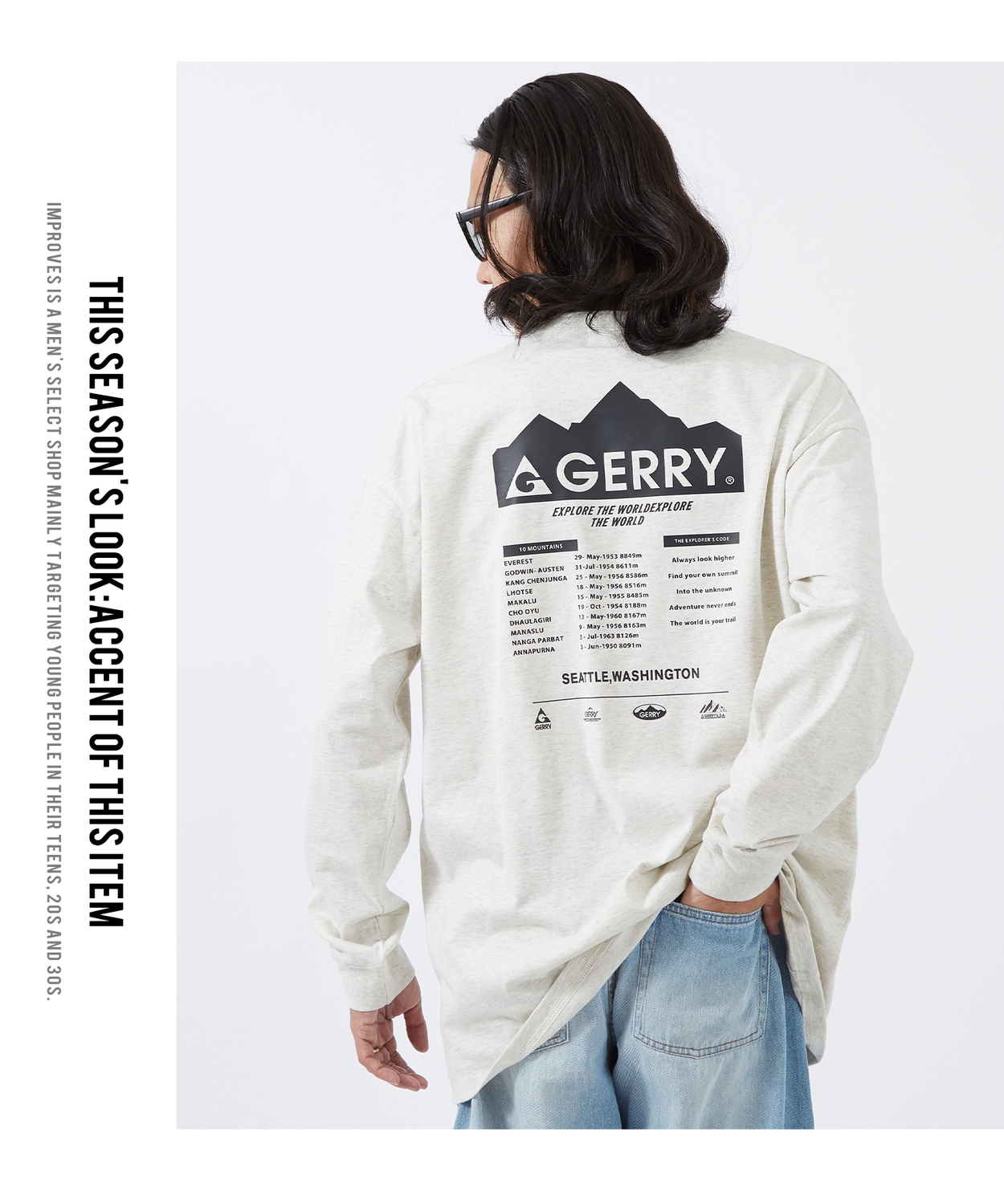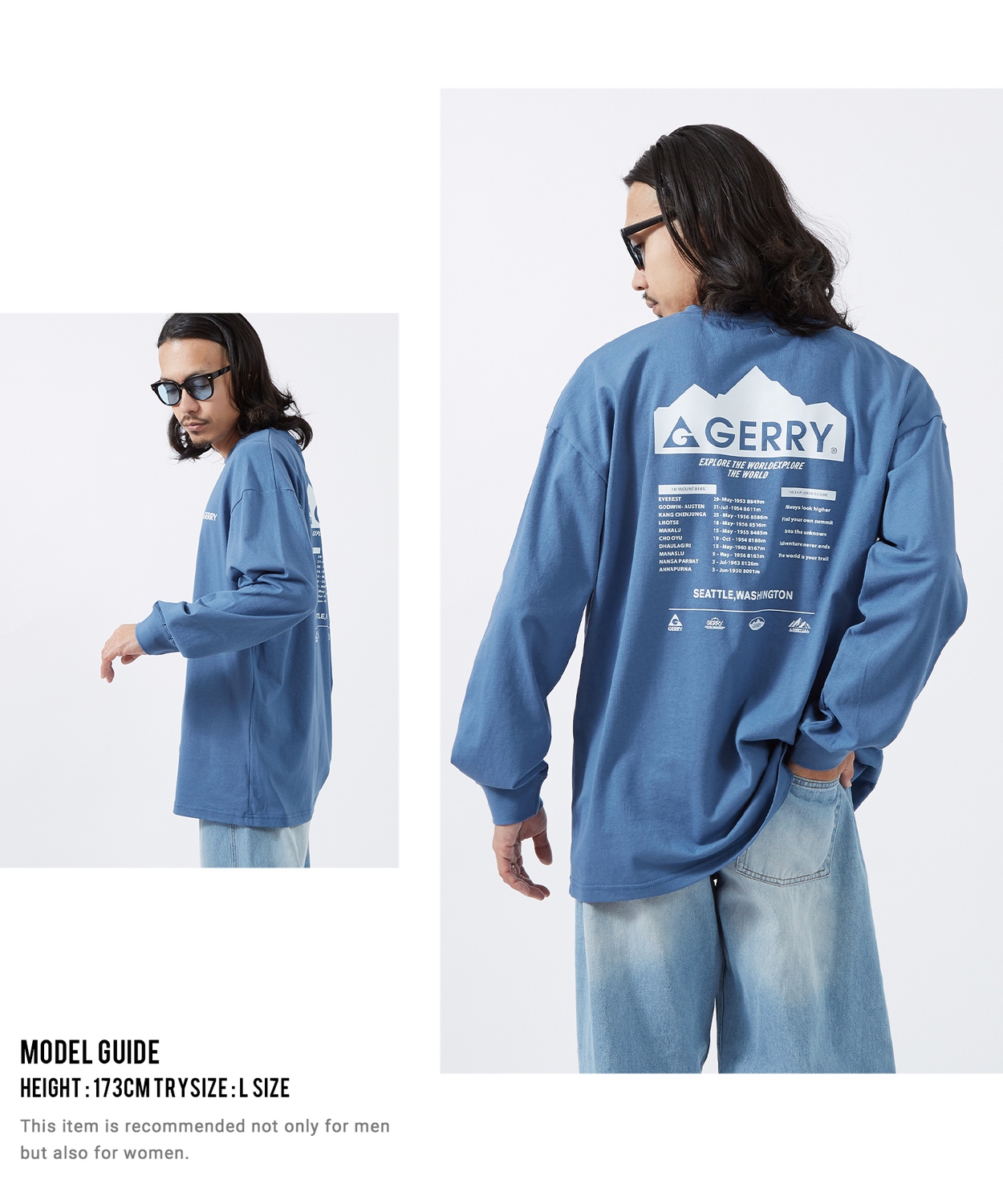 Item Info 世界の頂上を背負う GERRY別注 マウンテニアリング ロンT ●手持ち感のあるコットン100%のボディを使用 ●トレンドを感じさせるゆったりとしたサイジング ●ホワイト、ブラックといった定番カラー以外にオートミール、カーキ、ダークブルーといった差し色をご用意 ●アイコニックロゴがコーデの主役になる存在感抜群の一枚 アウトドアテイストのアイテムをタウンユースへ落とし込んだ別注オリジナルの長袖Tシャツ。 ストリート、アメカジ、古着MIX、韓国ファッションと、どんなファッションにも取り入れやすいです。 アウトドアにカーゴパンツやショーツと合わせるも良し、 デニムやワイドパンツとアーバンに合わせるも良しの男性だけでなくメンズライクな女性にもオススメの仕上がりとなりました。 GERRY/ジェリー 生誕から半世紀以上という長い歴史を持つアメリカン・アウトドアブランド。 キャンパー、フィッシャーマン、ハイカー、クライマーの為の機能的なギアを作りはじめ、現在のアウトドアブランドの基盤を築き上げました。 Item Size