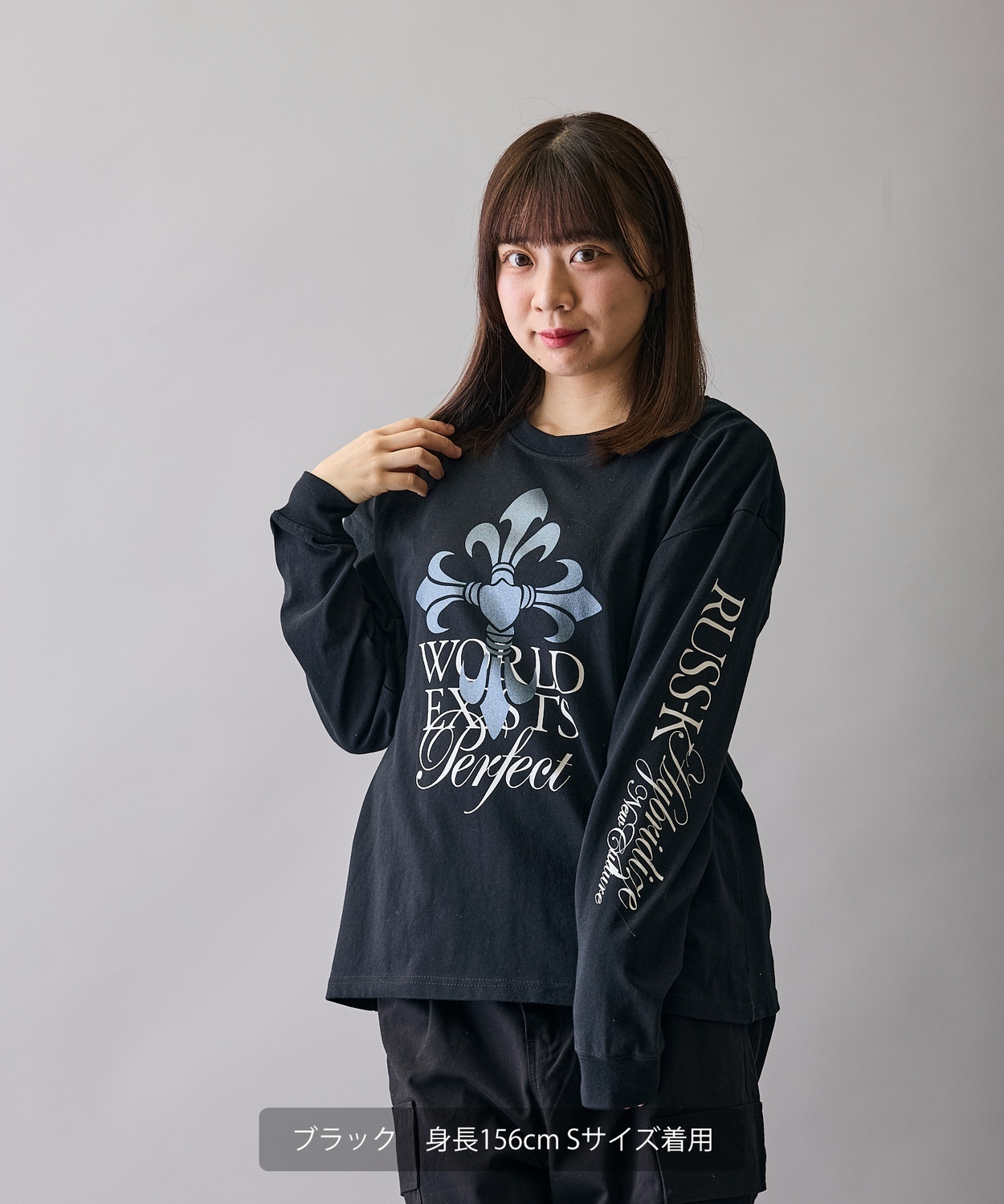 光を纏うグラフィック ラスケー別注 ユリクロス 長袖Tシャツ