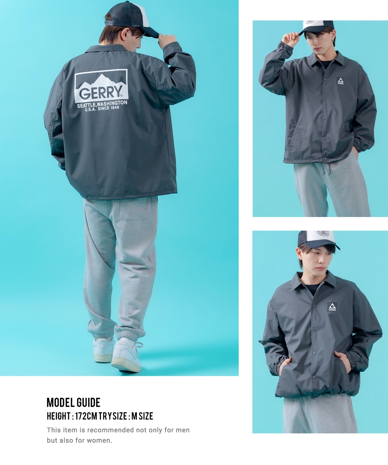 Item Info GERRY 伝統を背負う 別注ボックスロゴ コーチジャケット ●吸水性、速乾性に優れたサラッとしたポリ素材を使用 ●身幅にゆとりを持たせたバランスの良いボックスシルエット ●普段使いからアクティブシーンまで使えるコーチジャケット ●定番のブラック、ネイビー、グレーの3色展開 年齢を選ばないベーシックなデザインでアメカジ、ストリートとどんな ファッションにも合わせやすく男性だけでなく女性にもオススメの仕上がりとなりました。 GERRY/ジェリー 生誕から半世紀以上という長い歴史を持つアメリカン・アウトドアブランド。 キャンパー、フィッシャーマン、ハイカー、クライマーの為の機能的なギアを作りはじめ、現在のアウトドアブランドの基盤を築き上げました。 Item Size