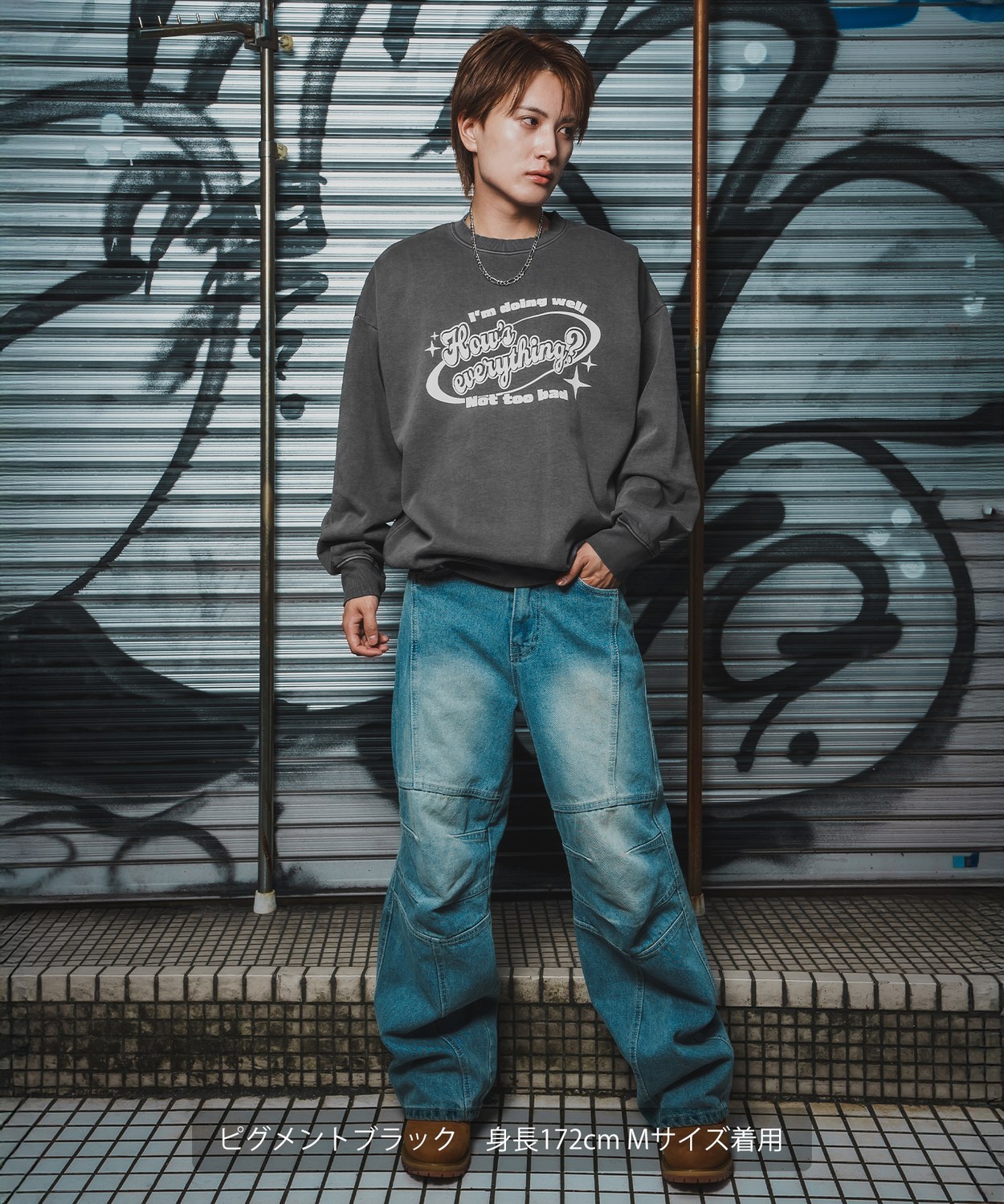 Photograph ![]() ![]() ![]() ![]() ![]() ![]() ![]() ![]() ![]() ![]() ![]() ![]() ![]() ![]() Item Info ストリート、古着MIXスタイルに欠かせない、ヘビーウェイトの裏起毛素材を使ったオーバーサイズのプリントスウェット。 ●コットン混の程よく肉厚の半裏毛スウェット生地を採用 ●POPなフォントプリントがY2Kコーデにピッタリなデザイン ●着古したようなヴィンテージ感のある色合いが最大の魅力 ワイドデニムやカーゴパンツ、ウォッシュドジーンズと合わせれば、即座にストリートテイストが完成。 スラックスやジョガーパンツと合わせ、ネックレスやシルバーアクセサリーをプラスすれば、都会的な韓国風モードに。 ユニセックスアイテムなので、女性がオーバーサイズでワンピース風に着こなすのもおすすめ。 Item Size