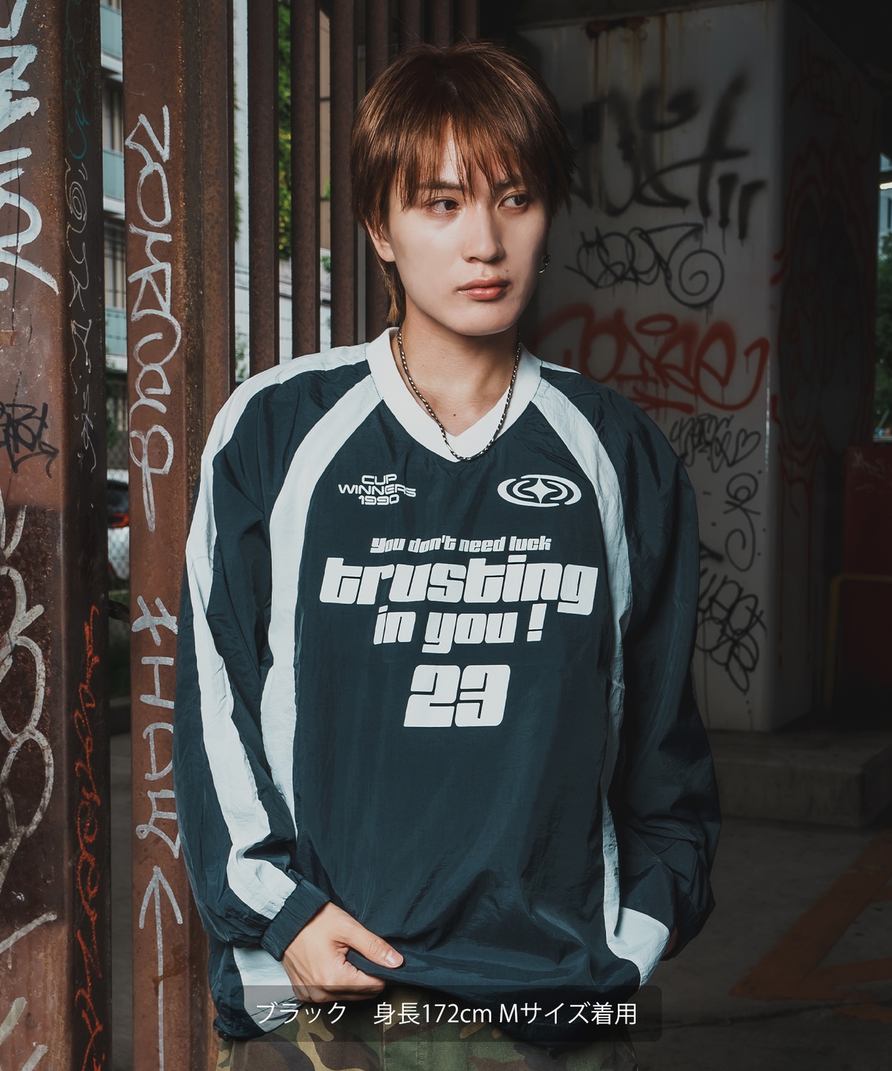 Photograph ![]() ![]() ![]() ![]() ![]() ![]() ![]() ![]() ![]() ![]() ![]() ![]() ![]() ![]() ![]() ![]() ![]() ![]() ![]() ![]() Item Info 【90'sストリート】 レトロで旬なスポーツミック、Y2Kススタイルが完成するプルオーバー ●表地はナイロン100%で、軽量でシャカシャカとした風合いのウィンドブレーカー/ピステのような素材感 ●トレンド感のあるゆったりとしたビッグシルエット/オーバーサイズ ●胸元のビッグロゴとプリントがストリートな雰囲気を演出 ●裾にはドローコード付きで、シルエットの調節や風の侵入を防ぐことが可能 普段使いの他、スケートボードやダンスなどのストリートスポーツ、アウトドア、フェスにも最適。 トラックジャケット、ウィンドブレーカー、ピステといったアイテムのような使い方がおすすめ。 メンズはもちろん、レディースにも着ていただきたいユニセックスデザイン。 Item Size