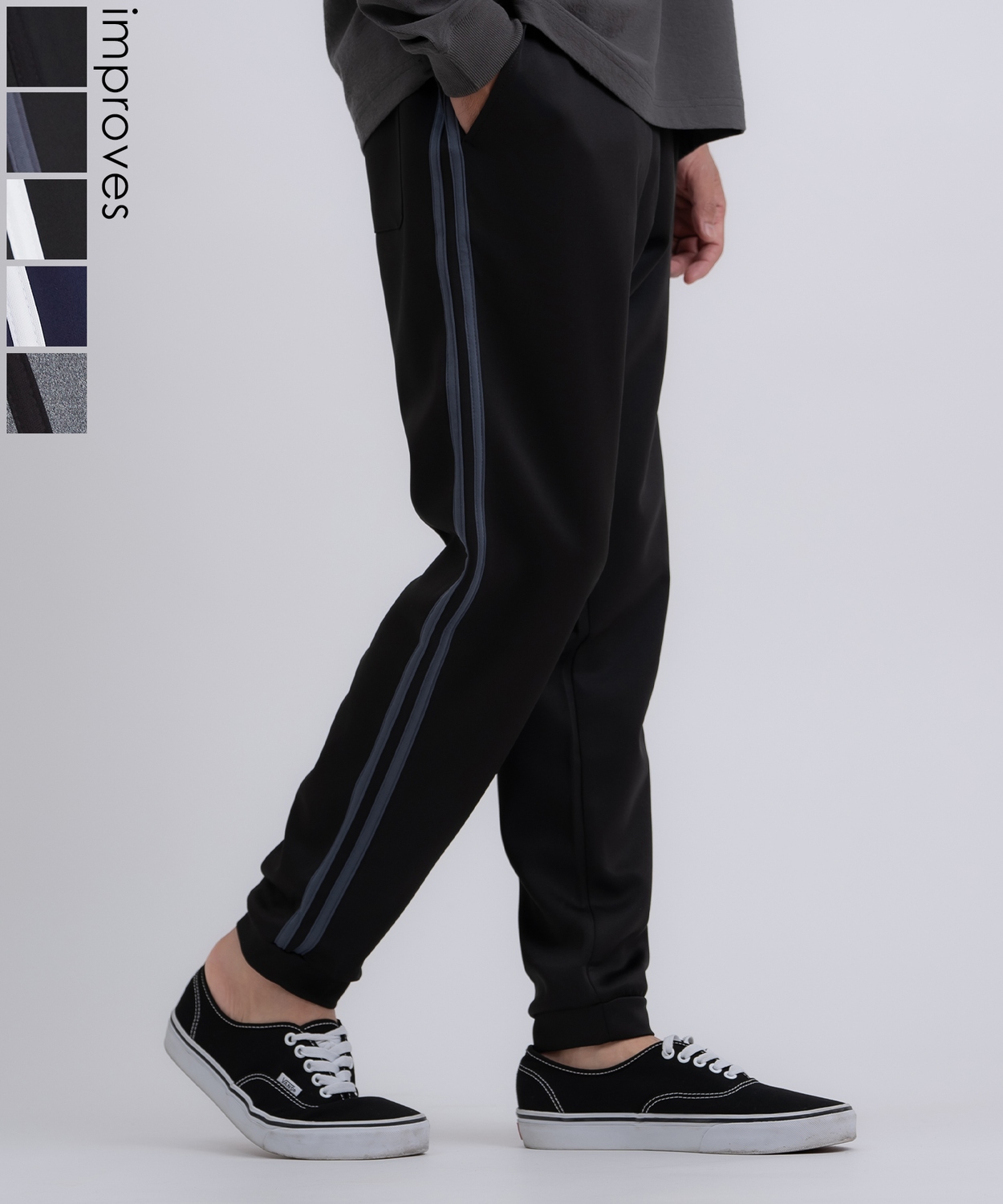 高機能のストレッチ素材ラインジョガーパンツ