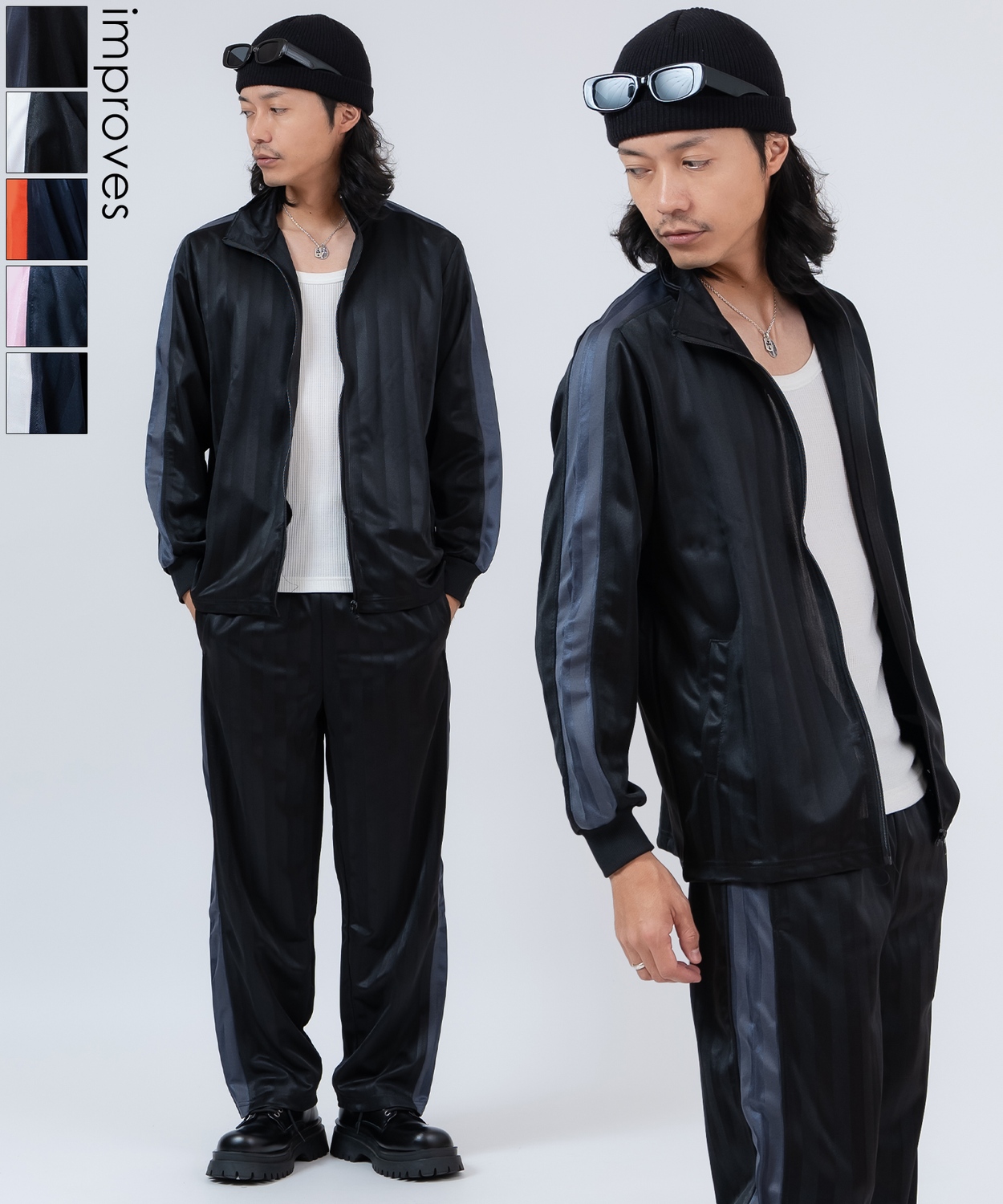 90年代ストリートを彷彿とさせるレトロなシャドーストライプが主役!スポーティーにもモードにも着こなせるジャージセットアップ!