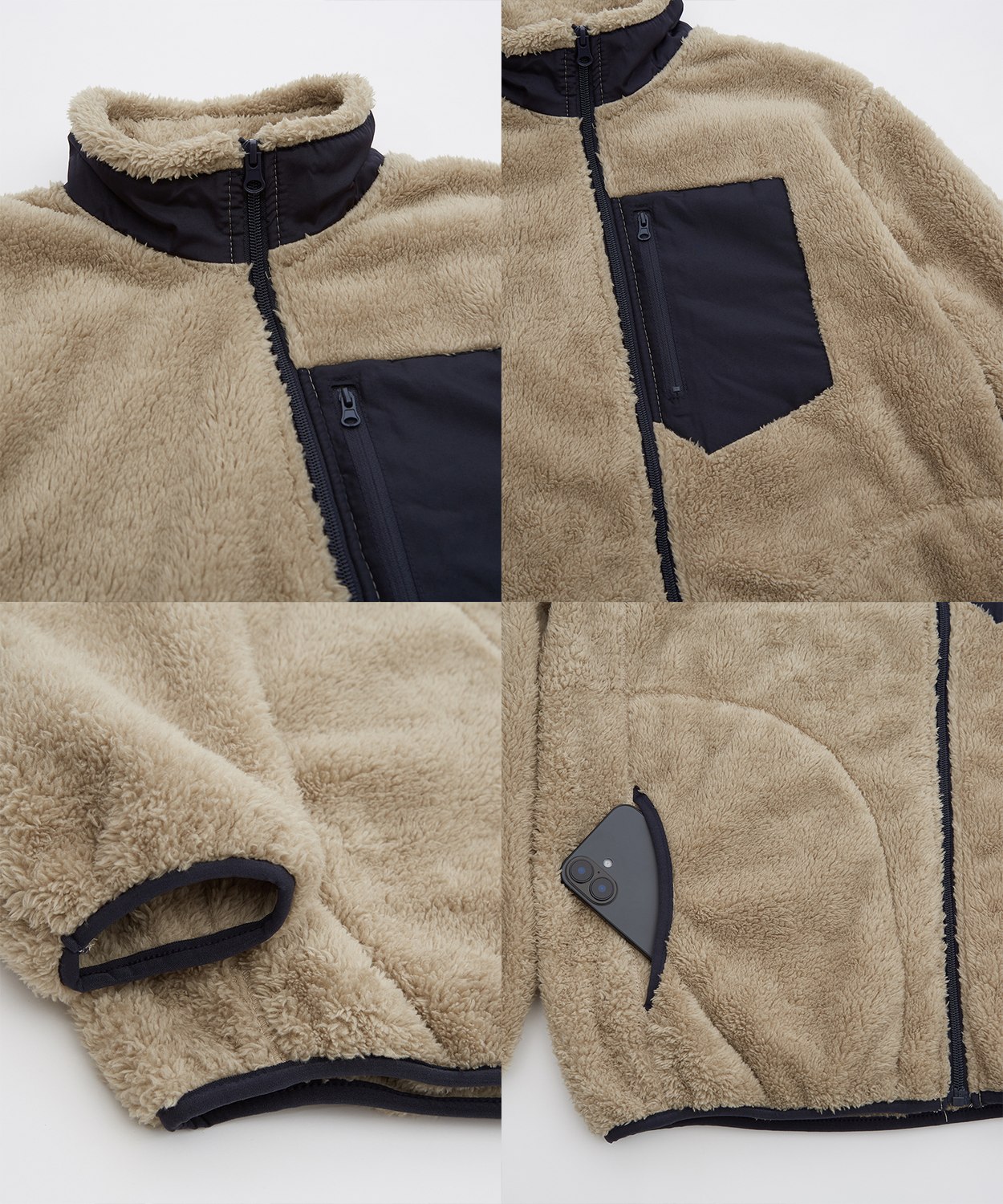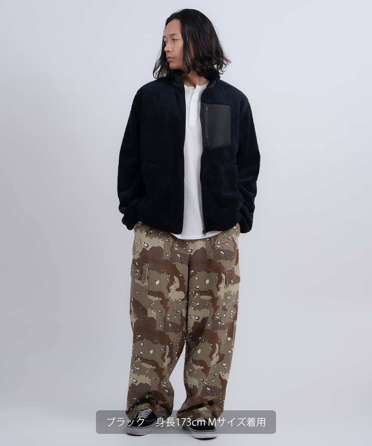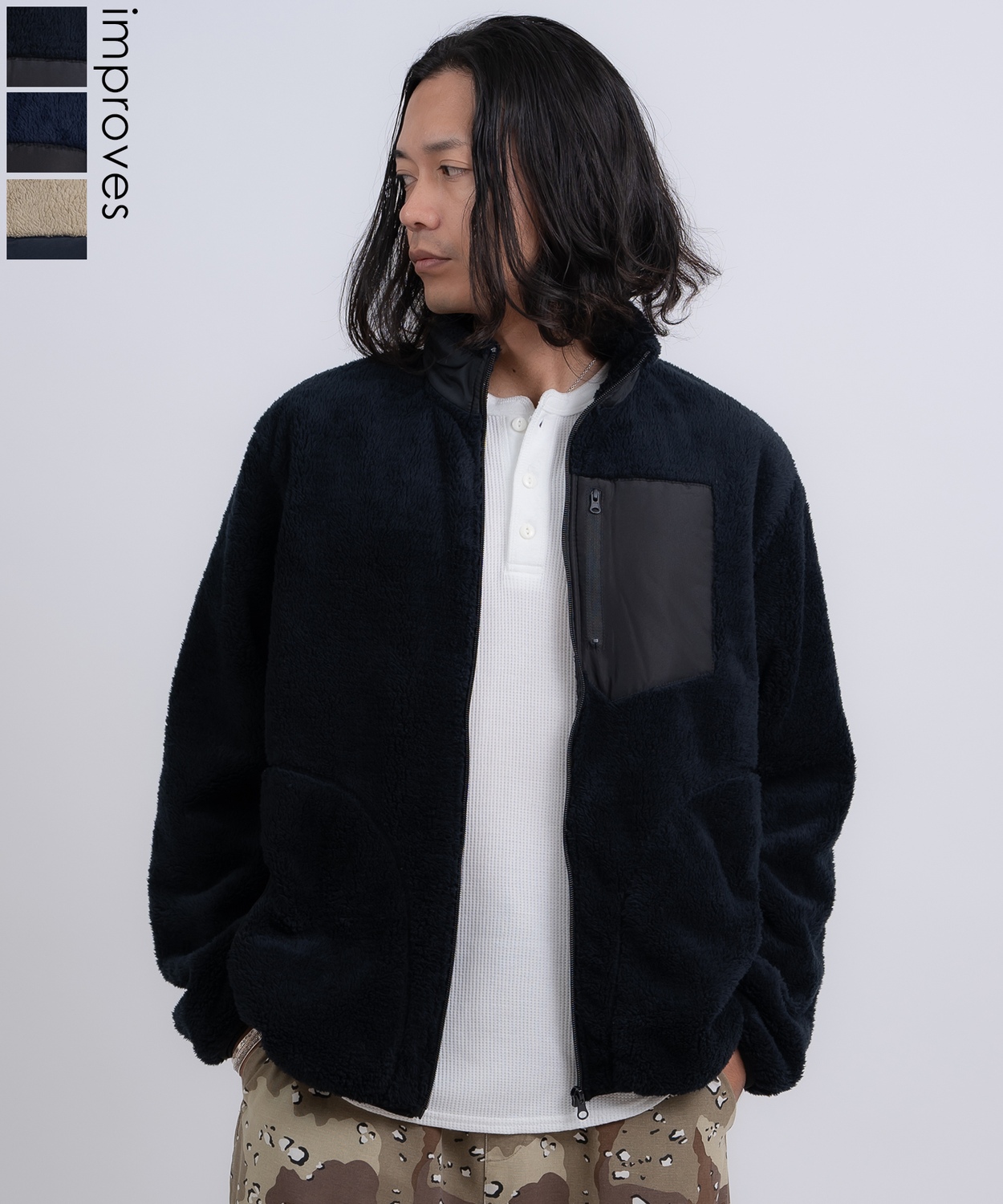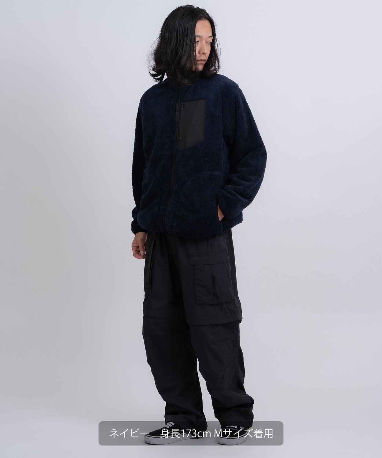 Attention ※ウエストにゴムが入ったパンツのウエスト値は、推奨ウエストのサイズです。伸縮値では御座いませんのでご注意下さい。 ※大量生産による生産過程におきまして、 若干の個体差(1cmから2cm)が生じる場合がございます。 それ以上の差異がある場合は弊社までお問い合わせください。 【サイズの測り方についての詳細はこちら】 ※サイトに掲載されている商品は、モニター環境により実際のものと素材感・色が若干異なって見える場合がございます。 ※加工具合により掲載画像との誤差が見られる場合もございます。 予めご了承くださいますようお願い申し上げます。 image ![]() ![]() ![]() ![]() ![]() ![]() ![]() ![]() ![]() ![]() ![]() ![]() ![]() ![]() ![]() ![]() ![]() ![]() 防寒性とデザイン性を両立!トレンドの切り替えしボアフリースブルゾン ●毛足が長くボリューム感のあるシープ調のボアフリースを採用 ●左胸には異素材のナイロン切り替えチェストポケットを配置 ●首元までしっかりとカバーする立ち襟デザインと、襟や袖口に施されたパイピング ●年代や性別を選ばないノーマルシルエット 圧倒的なコスパを誇るシンプルな防風ボアジャケット。 アウトオブライクなディティールでライミングパンツやカーゴパンツと合わせてアクティブな印象のコーデがオススメ。 冬はダウンベストやコートのミドルレイヤーとしてもおすすめ。 メンズはもちろん、レディースにも着ていただきたいアイテムです。 圧倒的なコスパを誇る、冬の定番ブルゾン