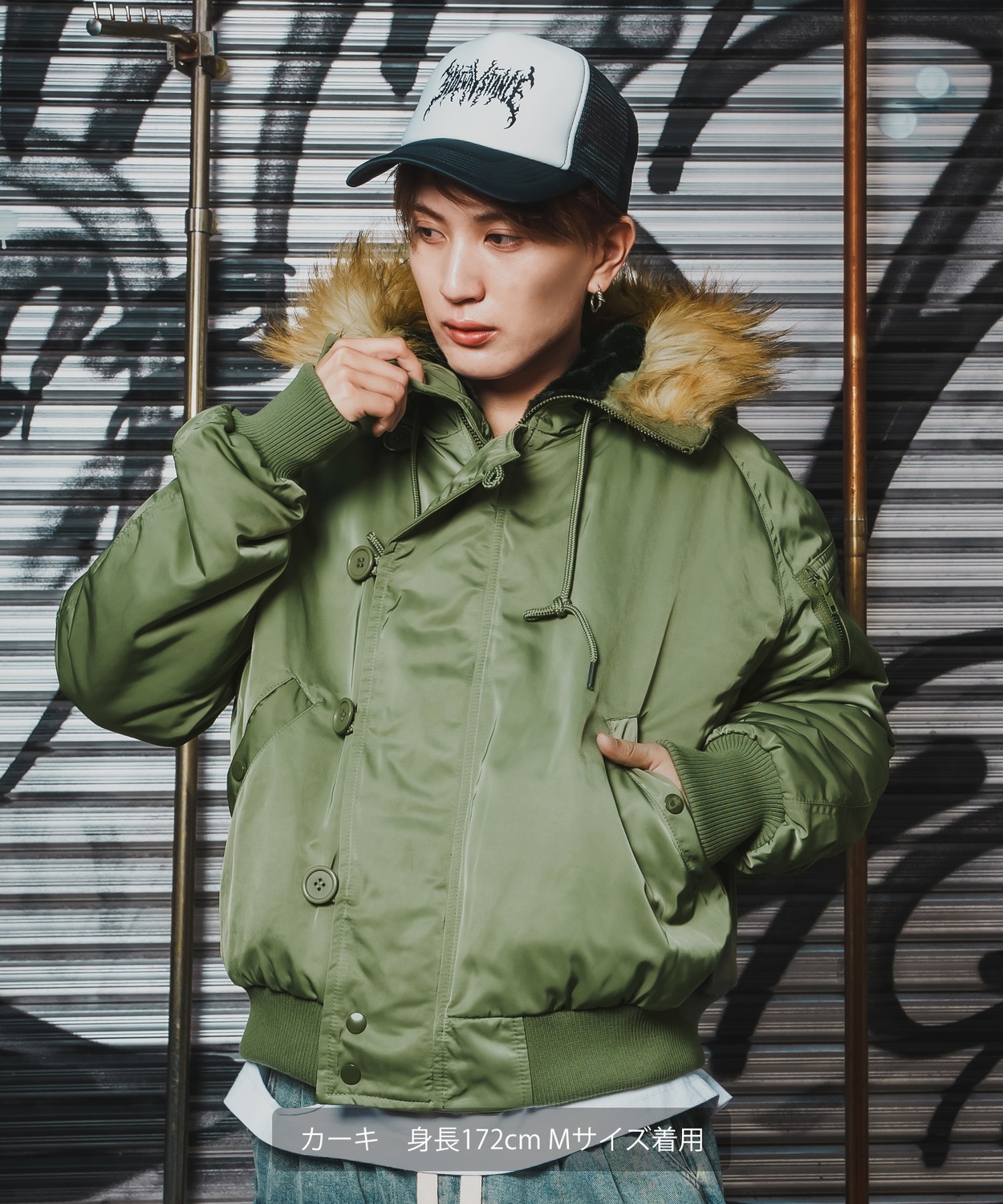 Photograph ![]() ![]() ![]() ![]() ![]() ![]() ![]() ![]() ![]() ![]() ![]() ![]() ![]() ![]() ![]() ![]() ![]() ![]() ![]() ![]() ![]() Item Info ミリタリーテイストの定番アウターに、トレンド感のあるディテールと防寒性をプラスした、秋冬シーズンに大活躍する一着。 ●程よく光沢があり、スレに強い生地を採用 ●取り外し可能なフェイクファー付きのフード、シガレットポケットを装着 ●しっかりと中綿が入っており高い保温性を発揮 ●ゆったりとした身幅とボリューム感のあるシルエットで、旬のストリートスタイル ●ミリタリーの定番のカーキ、使いやすいブラックの2色展開 ディティールやシルエット、素材にこだわったオリジナルフライトジャケット。 Tシャツやパーカーに重ねて、ワイドパンツやカーゴパンツと合わせることで、旬のストリートスタイルが完成します。 ストリート、アメカジ、ワーク、韓国系ファッションと幅広いスタイルに合わせられ メンズライクなレディースにもおすすめしたい本命アウターとなりました。 Item Size