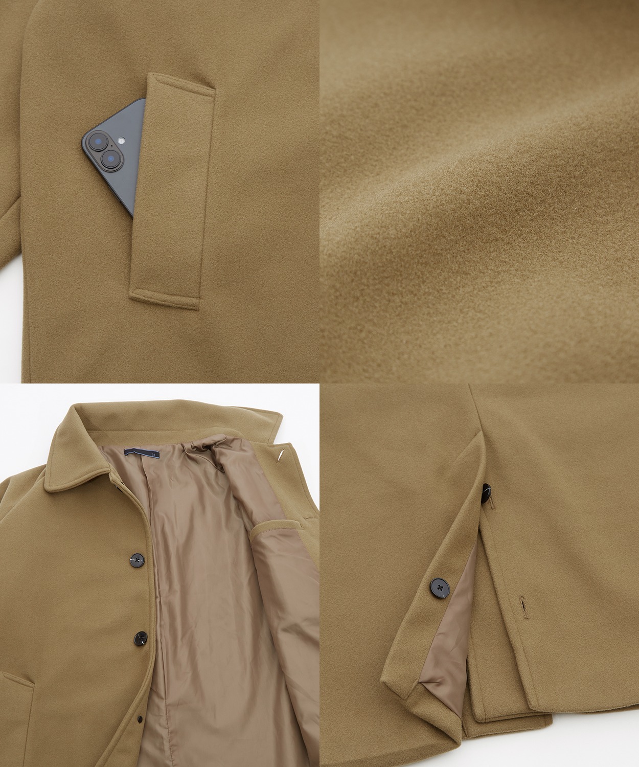 ●メルトンウールのような高級感を演出し、ポリエステルで軽量な仕上がり