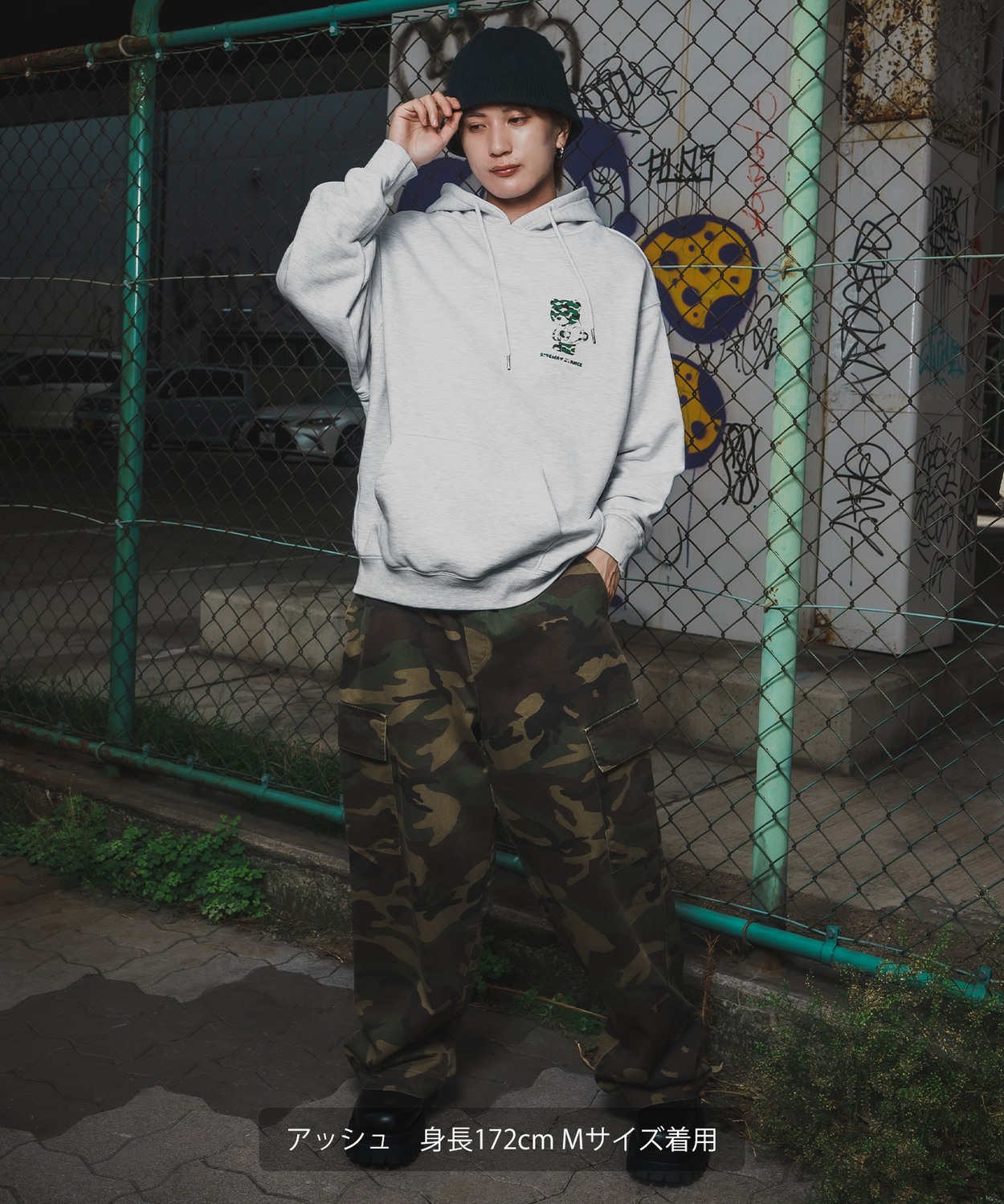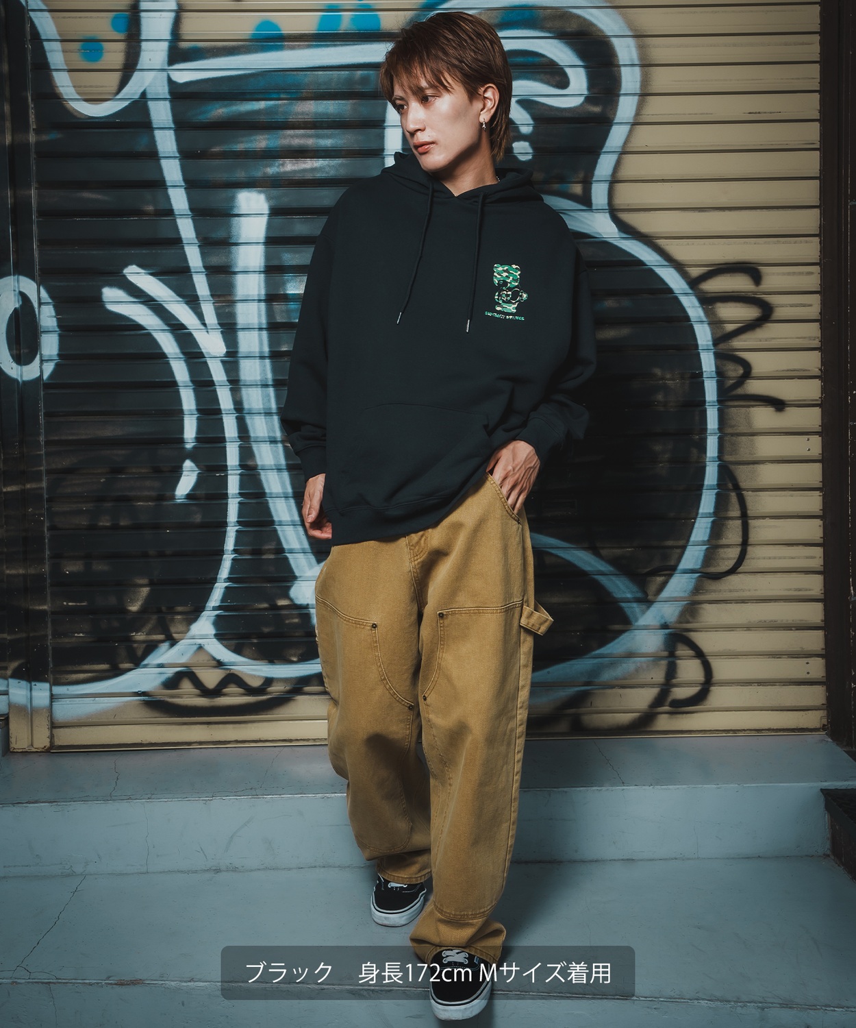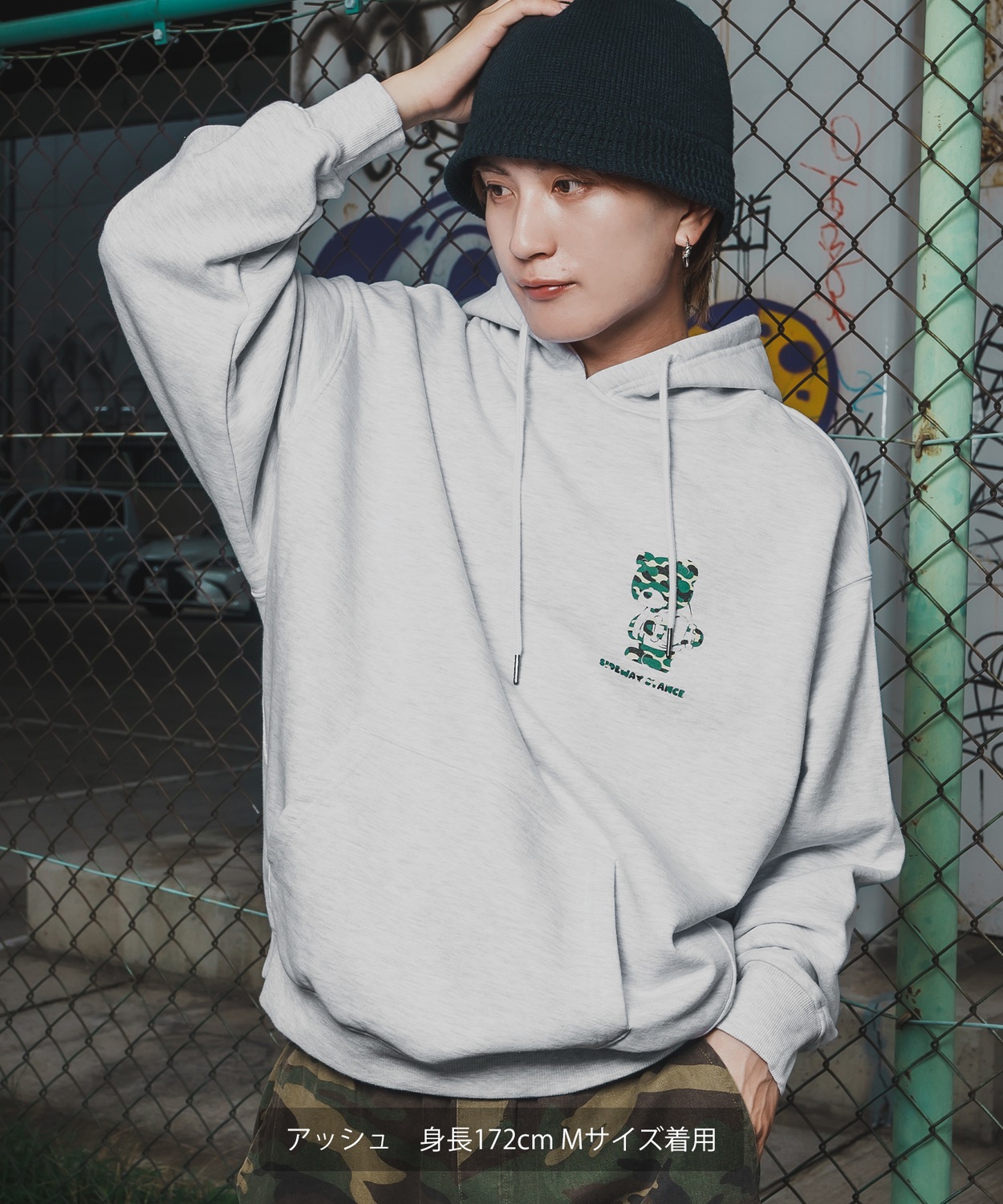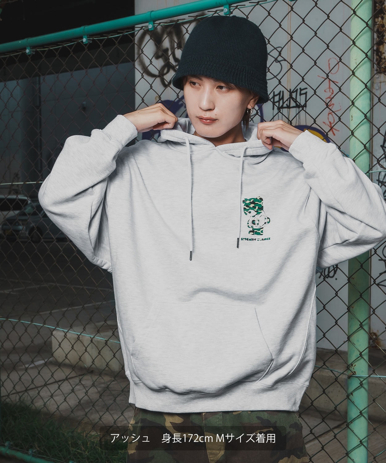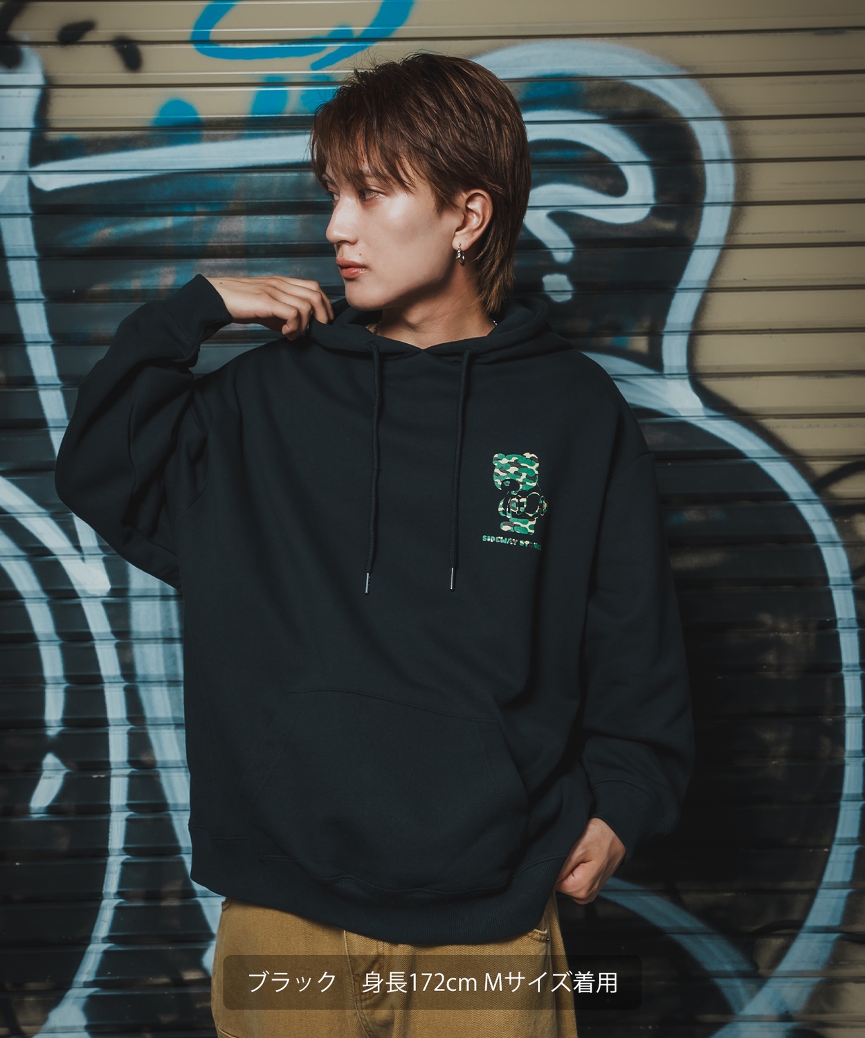 Item Info ストリート映えするデザインと快適なビッグシルエットフーディ。 SIDEWAY STANCEならではのキャッチーなパーカーが新登場。 ●触りの良い綿とポリエステルの混紡パイル素材(例:綿60%・ポリエステル40%)を使用 ●ゆったりとした身幅とドロップショルダーで、今の気分にぴったりのリラックス感を演出 ●厚手のインナーの上にも羽織りやすく、様々な体型の方に今っぽい着こなしを提供 ●迷彩柄のダウナーベアのシルエットプリントが可愛い一枚 定番のキャラクターからタギング風のイラストやグラフィティロゴ、 オマージュデザインまで、毎シーズンたっぷりと遊び心があって目を引く可愛らしいデザインが人気の秘訣。 ストリート、スケーター、韓国ファッションにオススメでワイドシルエットのチノパンやカーゴパンツ、デニムパンツとの相性バツグン。 男性にはもちろん、メンズライクな女性にも着ていただきたい仕上がりになりました。 【ブランド】 SIDEWAY STANCE/サイドウェイスタンス 「YOU CAN RELAX EVERY DAY - 毎日がリラックスできる」をコンセプトに、横ノリカルチャーとストリートの要素を融合。 キャッチーなグラフィックとユニセックスなデザインで、日常に遊び心と自由をプラスするライフスタイルブランド。 Item Size