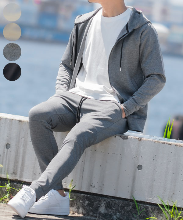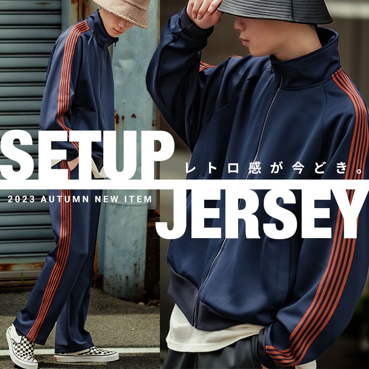 秋感のあるカラーリングのジャージセットアップ